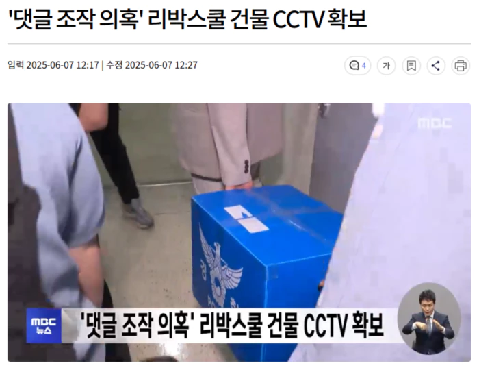 극우 성향 역사교육단체 '리박스쿨'의 댓글 조작 의혹을 수사 중인 경찰이 리박스쿨 관련 CCTV 영상을 확보했습니다.