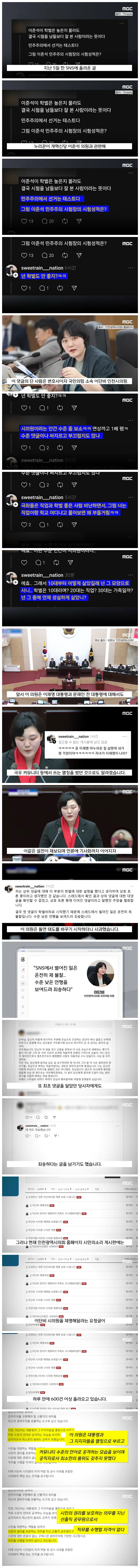 이 댓글을 단 사람은 변호사이자 국민의힘 소속 이단비 인천시의원 .