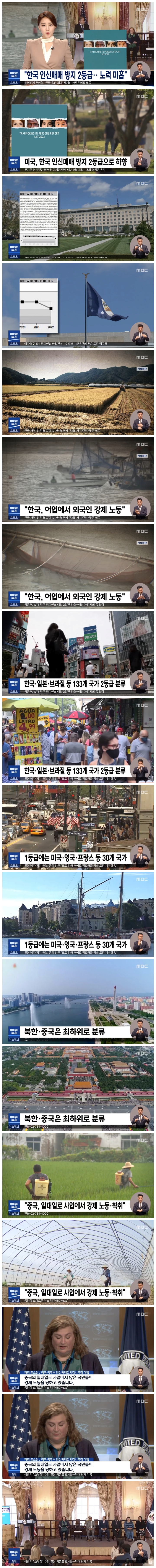 미국 국무부가 오늘 공개한 인신매매 보고서에 따르면 한국의 인신매매 방지 등급은 2단계로 분류됐습니다.