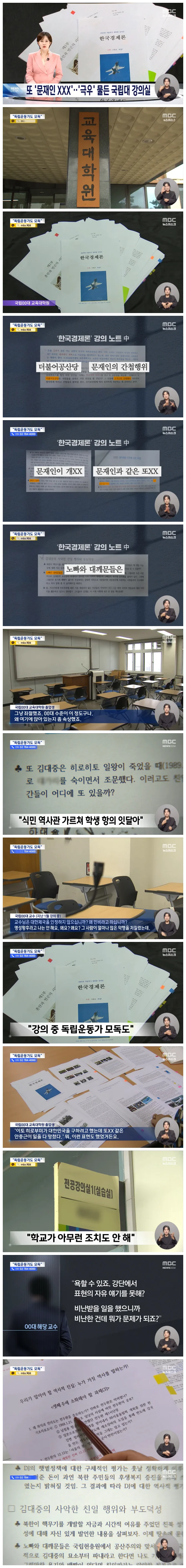 며칠 전 한 국립대 교수가 수업에서 '문재인 전 대통령이 간첩'이라는 등 정치 혐오 발언을 계속해 학생들이 반발하고 있다는 내용 전해드렸는데요.