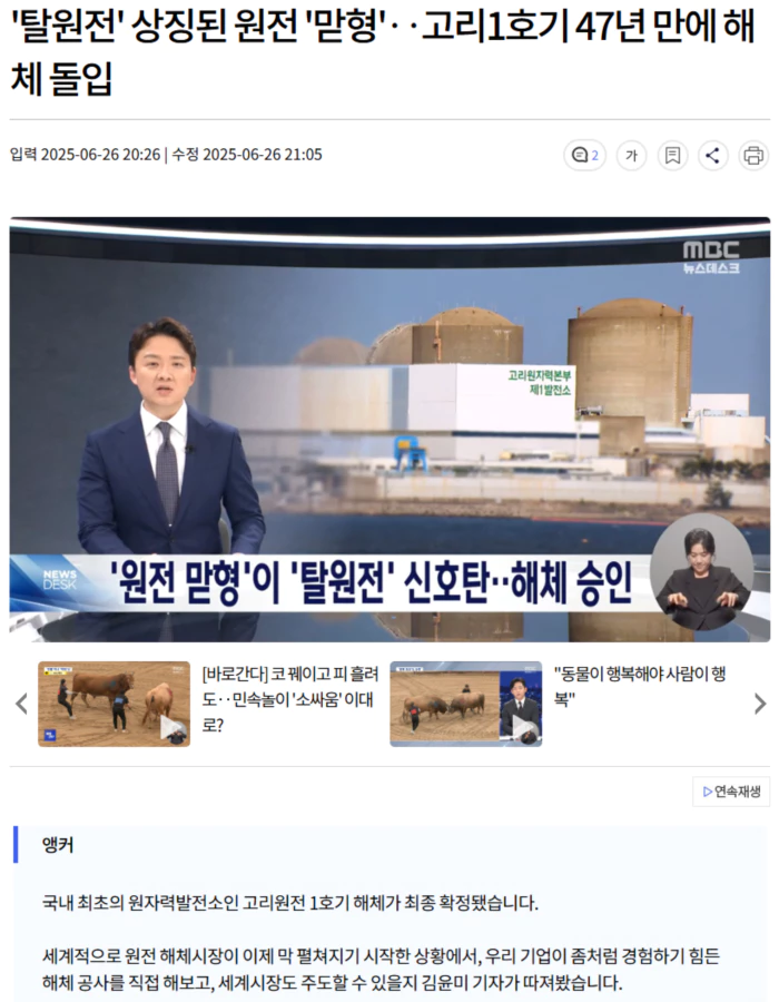 미국만 발전용 원자로를 해체해 본 적 있고, 우리도 이번에 첫 기회를 갖게 된 겁니다.