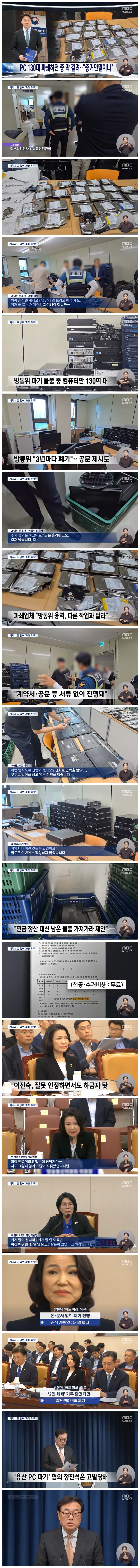 오늘(6/27) 오전 방송통신위원회가 업무용 PC 하드디스크를 대량으로 파쇄하던 도중, 국회 과방위 관계자에게 제지당했습니다.