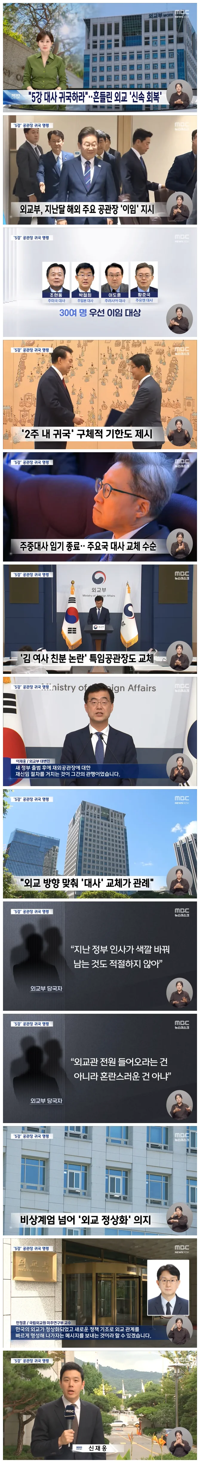 정부가 미국과 일본 등 윤석열 정부가 임명한 주요국 특임공관장들에게 '2주 안으로 업무를 마치고 귀국하라'는 지시를 내렸습니다.