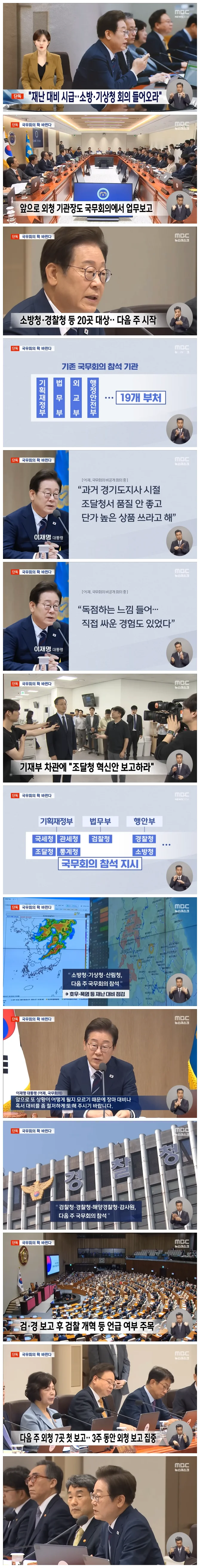 당장 다음 주부터 소방청, 기상청, 산림청이 대면 보고를 시작하는데, 장마와 폭염 피해 대책도 대통령이 직접 보고받을 예정입니다.