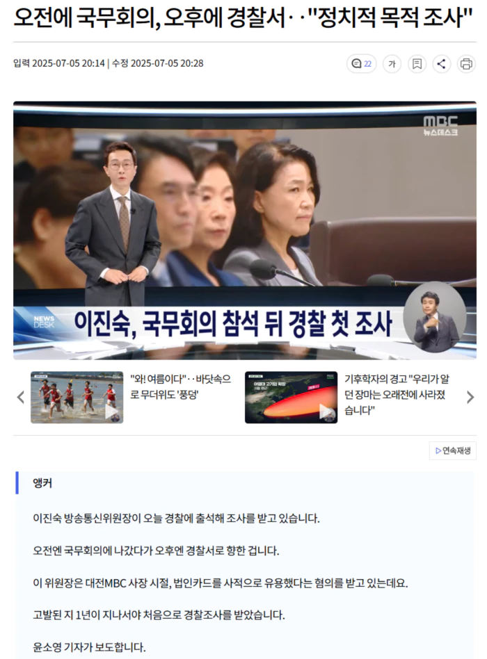 "정권 교체기가 되니까 어떻게든 문제를 삼아서, 이진숙을 손을 보는 것이 아닌가 개인적으로 생각을 그렇게 할 수밖에 없어요."