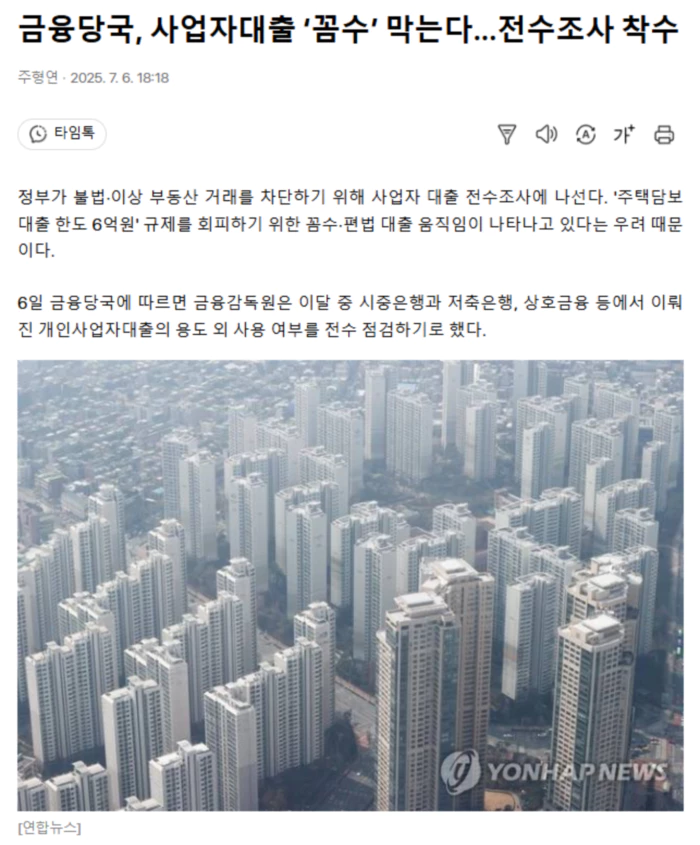 높은 금리의 사금융이나 대부업체를 이용해 잔금을 치른 뒤 몇개월 뒤 금리 연 4.5~5% 정도인 사업자대출로 대환하는 '꼼수'도 이미 잘 알려진 방법이다.