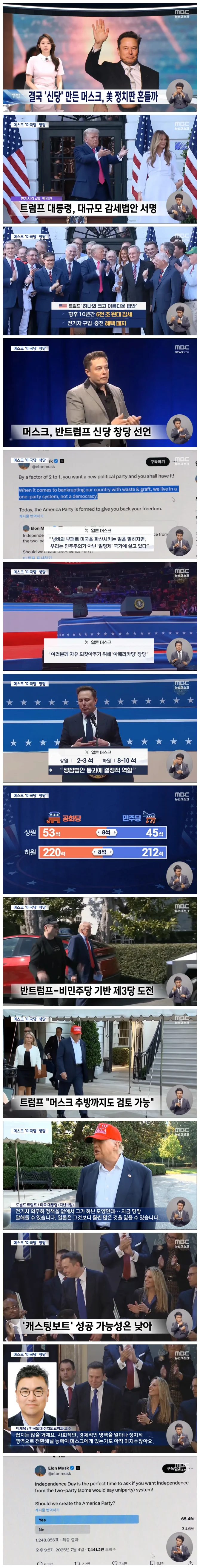트럼프 미국 대통령 당선의 일등공신이자, 최측근이었던 테슬라 최고경영자인 일론 머스크가 신당 창당을 발표했습니다.