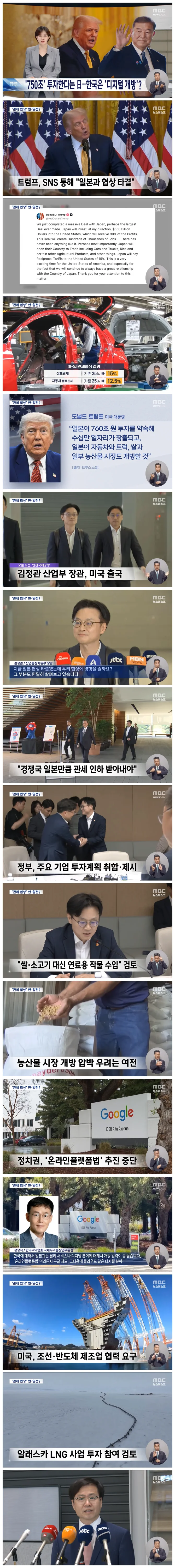 약 7백조 원 투자, 미국쌀 수입 확대 등을 내주는 대신 상호 관세를 기존 25%에서 15%로 줄였는데요.