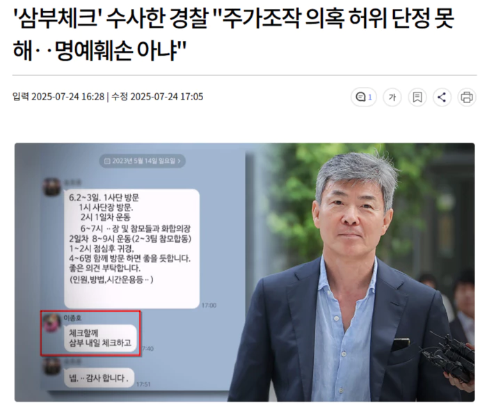 김건희 여사 최측근으로 알려진 이종호 전 블랙펄인베스트 대표의 '삼부 내일 체크'라는 SNS 메시지를 토대로 삼부토건 주가조작 의혹을 제기한 것은 허위사실 적시에 의한 명예훼손으로 볼 수 없다는 경찰 판단이 나왔습니다.