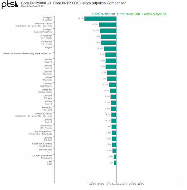 그런데 이 완화조치에는 성능하락이 뒤따라 오게 되며, 리눅스 사이트 Phoronix 는 이것에 대한 테스트를 실시하였습니다.
