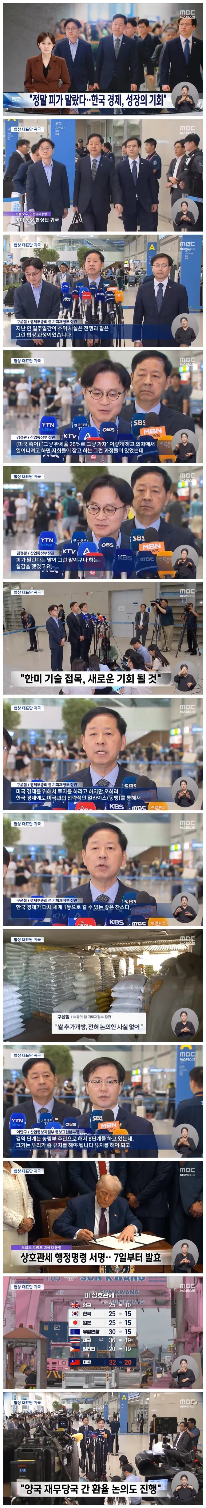 미국과의 극적인 무역 합의를 이끌어낸 구윤철 경제부총리와 협상단이 조금 전 귀국했습니다.