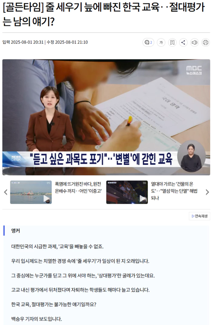 상대평가에서 기인된 줄 세우기는 학생들의 심리적 고통과 막대한 사교육 비용으로 이어집니다.
