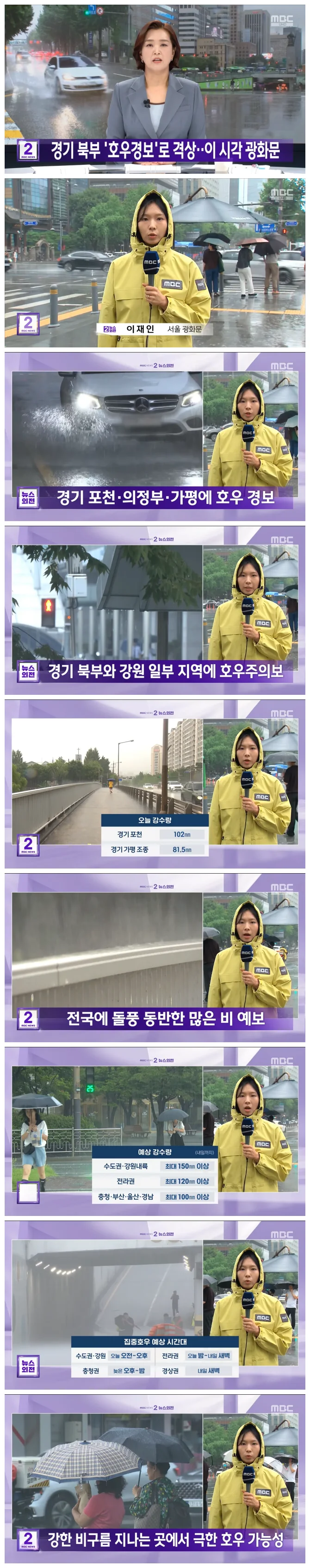 전국 대부분 지역에 매우 강한 비가 내리고 있습니다.