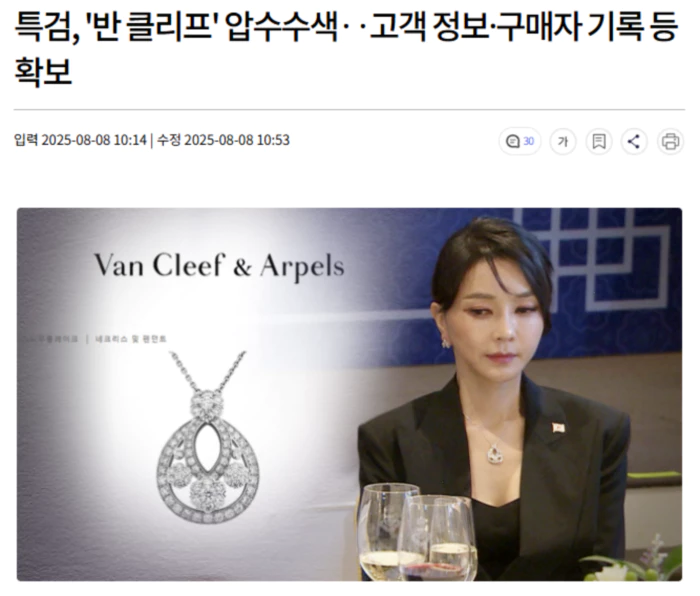 '김건희 국정농단' 특검이 김건희 여사가 2022년 나토 순방 당시 착용한 목걸이와 관련해 '반 클리프 앤 아펠' 측을 압수수색한 걸로 확인됐습니다.