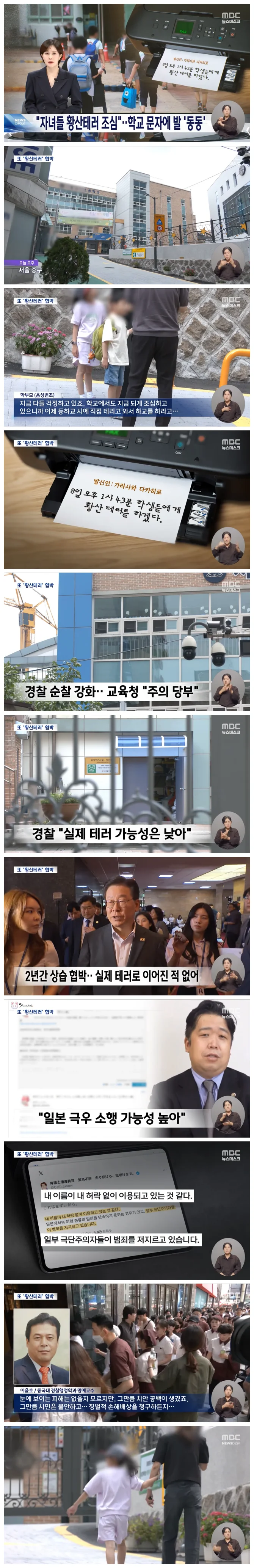 학생들에게 황산 테러를 하겠다'는 일본발 협박 팩스에 오늘 서울 일선 학교가 긴장했습니다.