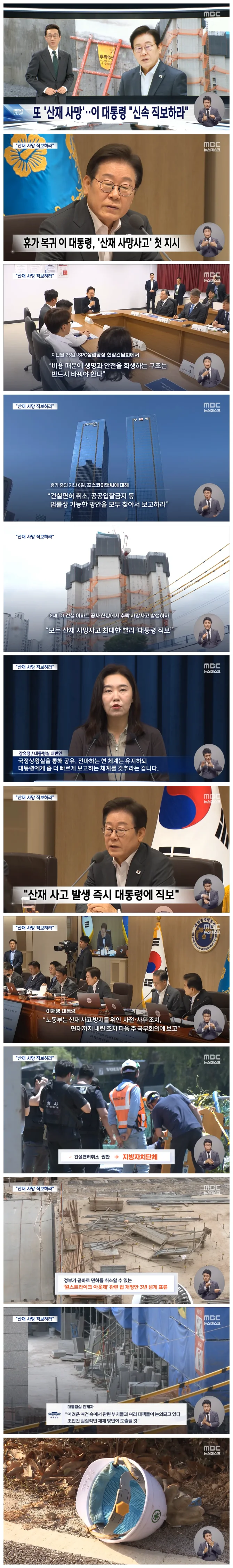 이 대통령은 취임 후 노동자 사망사고가 잇따른 SPC를 직접 방문한 데 이어, 포스코 이앤씨를 직접 지목해 질타했죠.