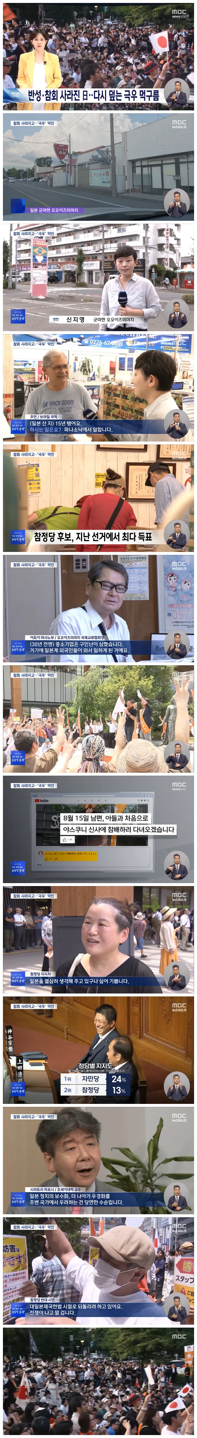 전쟁 범죄에 대한 반성과 성찰이 있어야 할 일본에선, 오히려 극우 세력의 돌풍이 거세지고 있습니다.