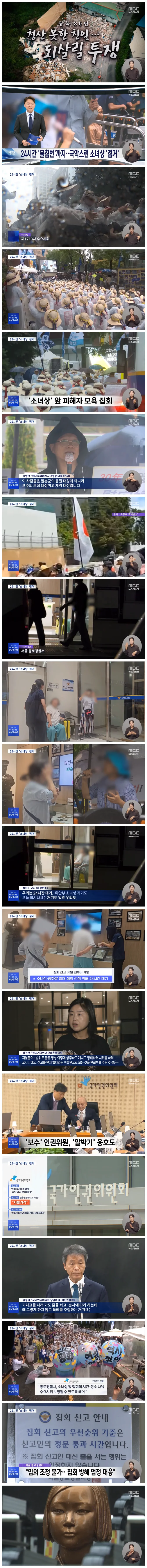 그래서 정작 수요집회는 소녀상에서 100미터 떨어진 곳에서 이뤄져야 했는데요.