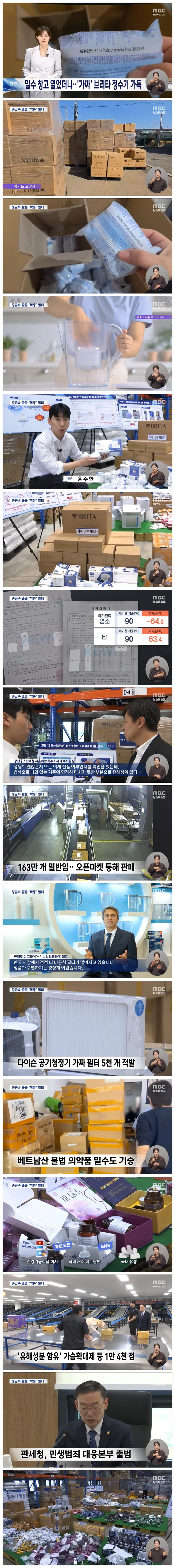 백만 개가 넘는 중국산 가짜 정수 필터를 밀반입한 일당이 세관에 적발됐습니다.