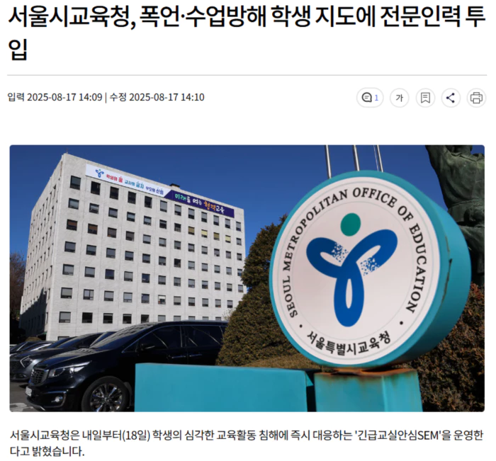 전직 교원과 상담사, 청소년 복지사 등 교육과 상담 경험이 풍부한 전문가들로 구성된 이 프로그램은, 학교에서 수업 방해, 폭언·폭행, 기물 파손 등의 상황이 발생할 경우 전문가들이 긴급 투입돼 밀착 지원할 수 있도록 운영됩니다.