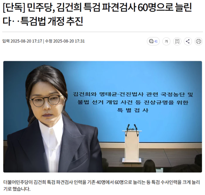 민주당 김용민 의원은 김건희 특검 파견 검사를 60명으로 파견공무원을 기존 80명에서 120명으로 늘리고, 수사대상도 확대시키는 조항을 담은 김건희 특검법 개정안을 발의하기로 했습니다.