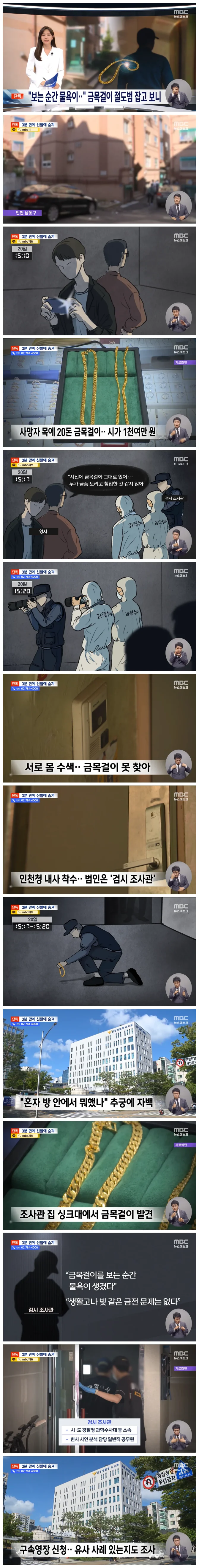 이 조사관은 금목걸이를 보는 순간 물욕이 생겨 신발 속에 감췄다고 진술했습니다.