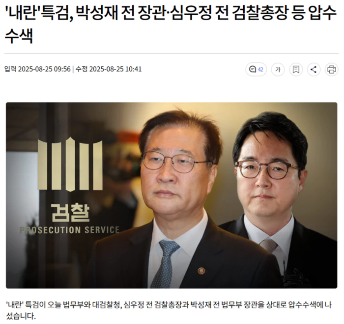 박 특검보는 "이번 압수수색은 박성재 전 장관과 심우정 전 총장이 내란 사태와 관련해 고발된 건에 대한 것"이라고 설명했습니다.