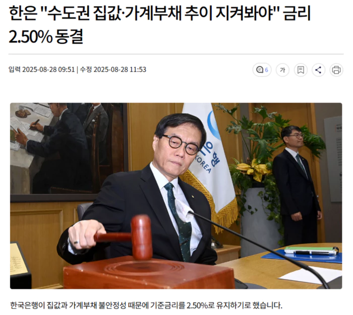 한은 금융통화위원회는 "수도권 주택 가격과 가계부채 추이를 좀 더 살펴볼 필요가 있는 만큼 현재의 기준금리 수준을 유지하면서 대내외 여건 변화를 점검하는 것이 적절하다고 판단했다"며 금리 동결 이유를 설명했습니다.