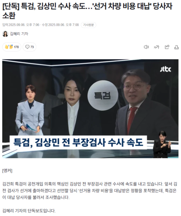 [기자] 김상민 전 부장검사는 2023년 9월 "뼛속까지 창원 사람"이라는 메시지를 지인들에게 돌린 뒤 현직 검사 신분으로 출마를 강행했습니다. 검찰총장 지시로 감찰까지 진행됐지만, 지난해 1월 출판 기념회를 열고 지역 유권자들에게 큰절까지 했습니다. [김상민/전 부장검사 (지난 1월 9일) : 돌아갈 수 있는 배를 태웠습니다. 공직에서 쌓았던 모든 것을 내려놓았습니다. 저는 이제 돌아갈 곳이 없습니다.] 이런 배경에 김건희 씨의 개입이 있었다는 게 명태균 씨 주장입니다. 김건희 씨의 '공천 개입' 의혹을 수사 중인 특검은 김 전 검사가 선거 당시 사용한 선거용 카니발 차량 리스 보증금 4000여만 원을 대납받은 정황을 포착해 수사를 이어왔습니다. JTBC 취재 결과, 특검은 어제(5일) 대납해 준 당사자로 지목된 김 모 씨를 불러 조사한 것으로 확인됐습니다. 김 씨는 사기 코인을 발행해 800여억 원을 챙긴 혐의로 구속기소 된 일명 '존버킴' 박 모 씨의 지인입니다. 특검은 김 씨를 상대로 김 전 검사와 만나게 된 계기와, 이우환 화백 그림과의 연관성도 캐물은 걸로 알려졌습니다. .. 후략 ..