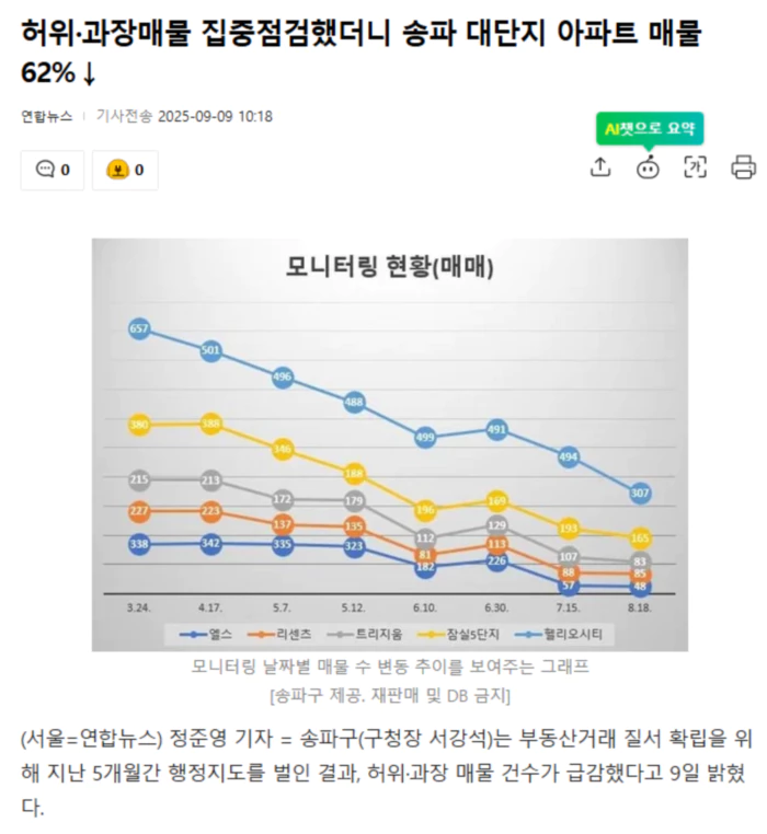 특히 민원이 잦은 대단지 아파트 매물을 집중적으로 살폈다. 지난 3월 헬리오시티를 시작으로 4월 잠실동(엘스, 리센츠, 트리지움, 잠실5단지 등), 7월에는 또다시 헬리오시티에 대해 점검했다.