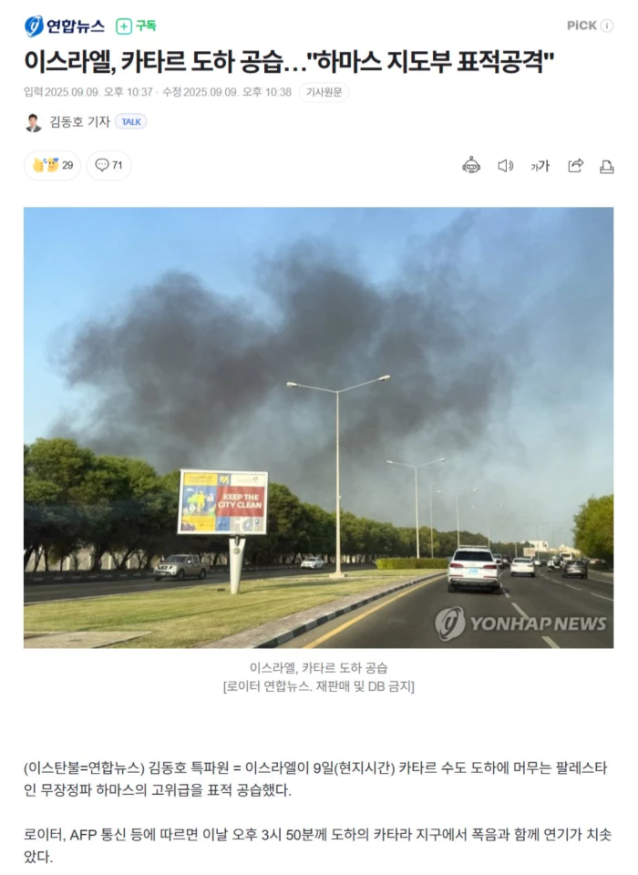 이스라엘은 2023년 10월 7일 하마스의 기습 공격을 받은 이후 2년간 전쟁을 이어오면서 하마스와 연대하는 친이란 무장세력을 노려 레바논, 시리아, 예멘 등에서 군사작전을 벌였지만 카타르를 공격한 것은 이번이 처음이다.