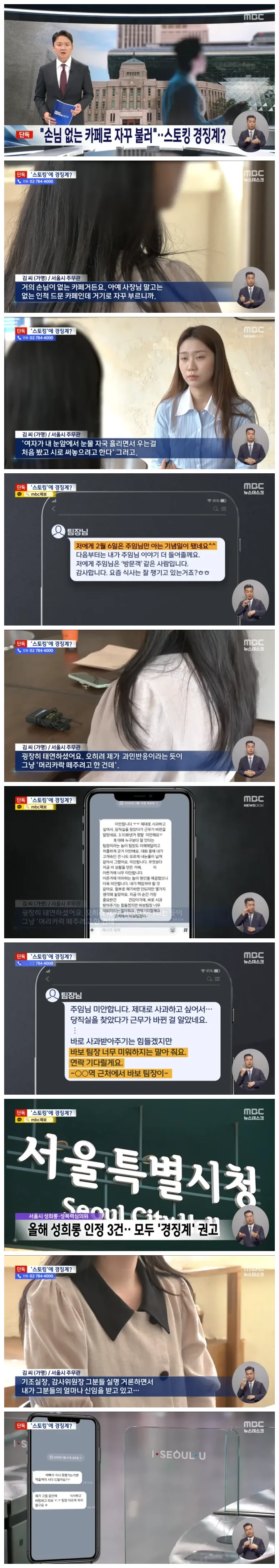 서울시의 한 남성 팀장이 수시로 여성 부하직원을 밖으로 불러내고, 심지어 야근하는 당직실과 집 근처까지 찾아가는 등 스토킹 혐의로 수사를 받고 있습니다.