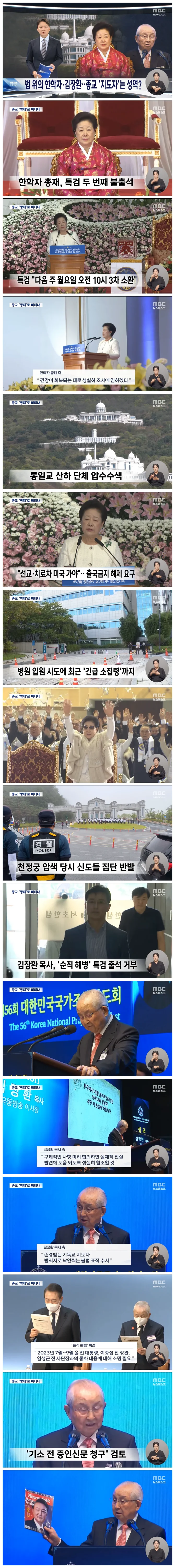 오늘(9/11)도 특검의 출석 요구에 불응한 통일교 한학자 총재 측이 전 세계 통일교 간부들에게 '긴급 소집령'을 내린 것으로 확인됐습니다.