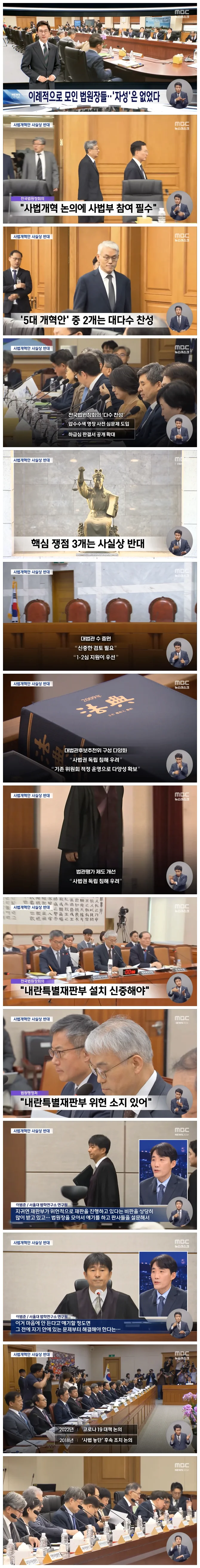 사법불신을 불러온 법원의 여러 행태에 대해서는 어떤 자성의 목소리도 없었습니다.