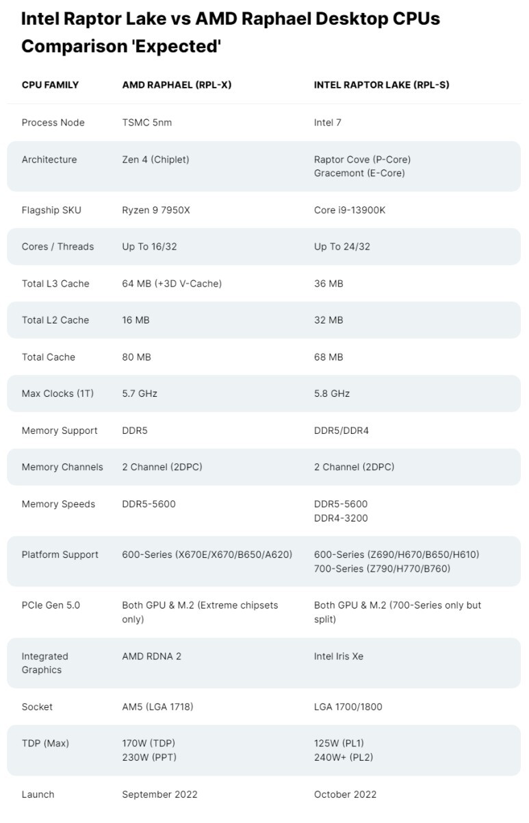 CPU는 2022년 가을에 출시되는 AMD의 Ryzen 7000 CPU 라인업 과 경쟁하게 될 것 입니다.