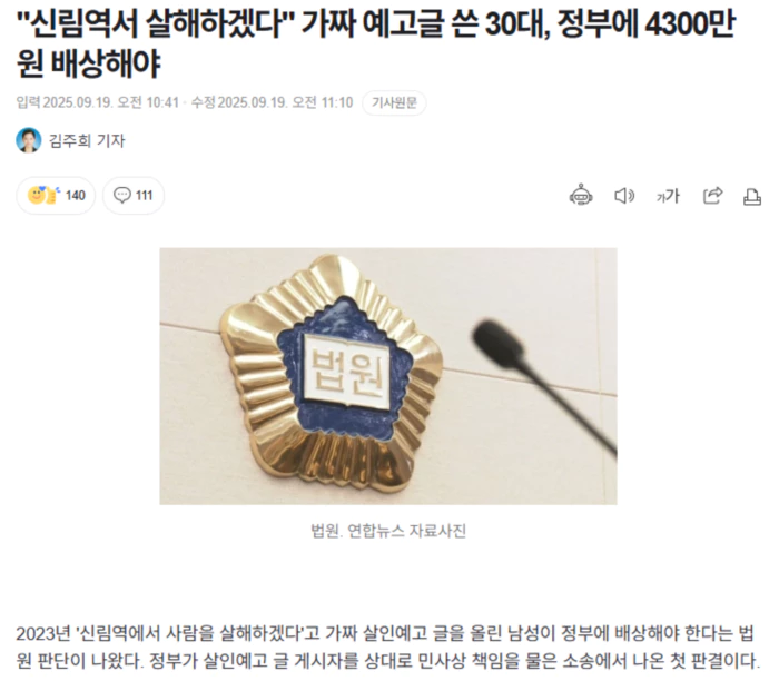 살인예고 글 게시자에 대해 형사 책임뿐 아니라 민사 책임까지 물어 재발을 방지하겠다는 취지였다.