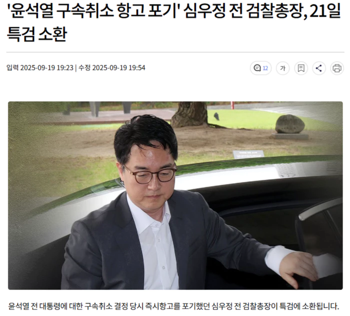 지난 3월, 법원이 윤 전 대통령의 구속을 취소했을 당시 심 전 총장은 상급 법원 판단을 받아볼 수 있는 즉시항고를 하지 않았습니다.