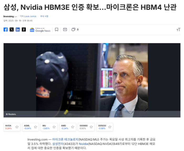 코리아 이코노믹 데일리에 따르면 삼성은 여러 차례 실패 끝에 최근 5세대 12단 HBM3E 제품에 대한 Nvidia의 인증 테스트를 통과했다. 삼성은 초기에는 SK하이닉스(43430)와 마이크론 테크놀로지에 이어 Nvidia의 세 번째 공급업체가 될 것이며, 물량도 제한적일 것으로 예상되지만, 이번 인증은 한국의 거대 기술 기업에 중요한 이정표가 될 것이다.