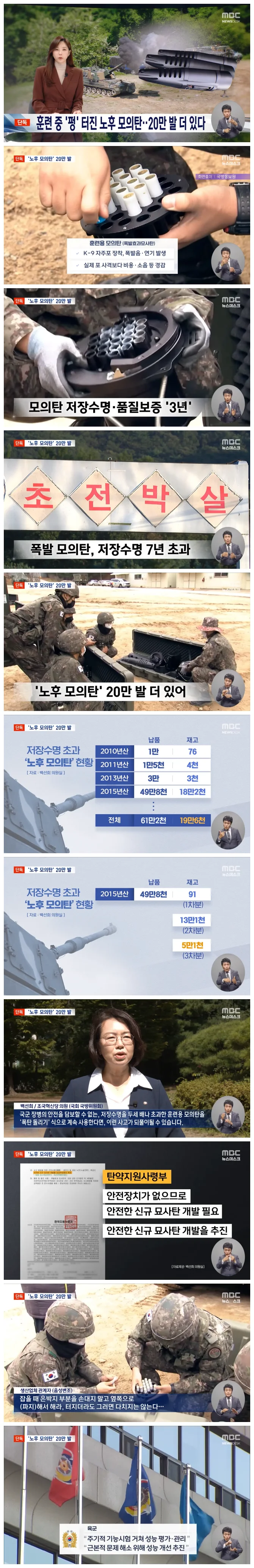 이렇게 저장수명을 크게 넘긴 '노후 모의탄'이 육군에만 20만 발이 더 있는 것으로 확인됐습니다.