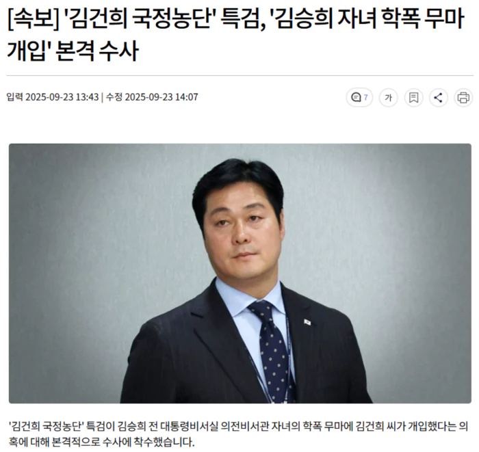 앞서 특검은 "대통령실 의전비서관의 자녀 학교 폭력 무마에 사인인 김건희가 관여했다는 의혹과 관련해, 부당한 외압이 행사되었는지 여부를 확인하고 있다"고 밝혔습니다.