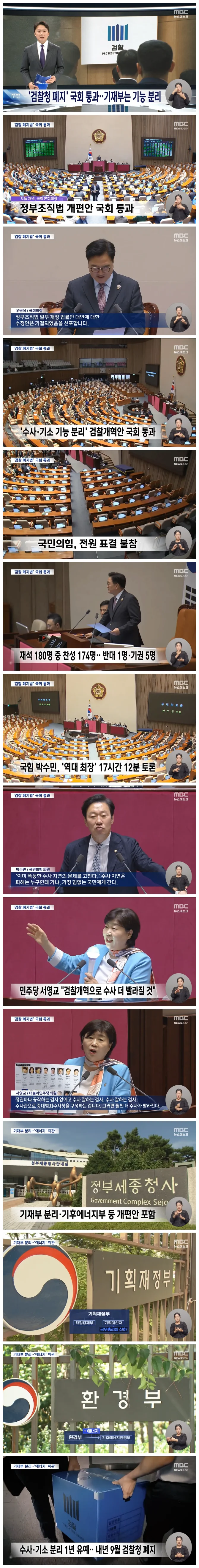 검찰청 폐지를 골자로 하는 정부조직법 개정안이 조금 전 국회 본회의를 통과했는데요.