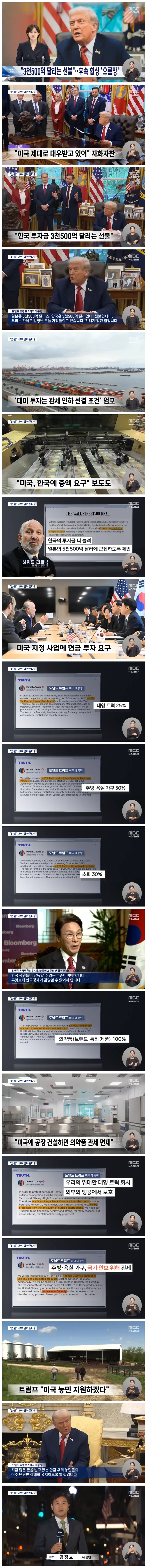 한미 관세 후속 협상이 난관에 봉착한 상황에서 트럼프 대통령이 "대미 투자금은 선불"이라며 압박 수위를 또 높였습니다.