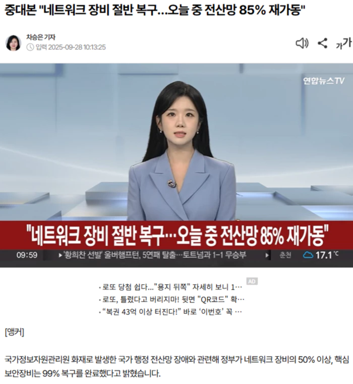 | "551개 서비스 오늘 중 재가동".. 복구작업 속도 (0) | 2025.09.28 |