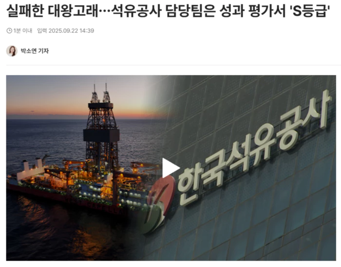 뿐만 아니라 대왕고래 프로젝트를 사실상 진두지휘했던 A씨는 이번 평가를 통해 300%가 넘는 성과급을 받는 것으로 전해졌습니다.