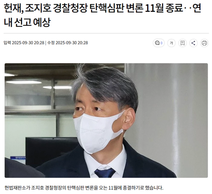 김상환 헌법재판소장은 오늘 열린 2차 변론에서 "11월 10일 오후 2시에 3차 변론 기일을 진행한다"고 밝히면서 "특별한 사정이 없으면 다음 기일에 변론을 종결할 예정"이라고 알렸습니다.