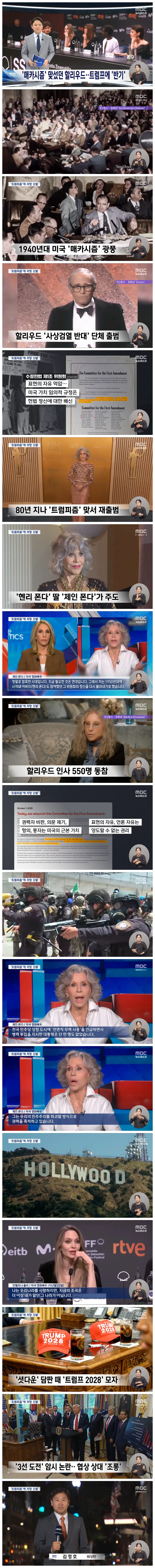 과거 매카시즘에 맞서 싸우기 위해 결성됐던 단체가 80년 만에 다시 만들어지고, 500명 넘는 할리웃 스타들이 동참할 정도인데요.