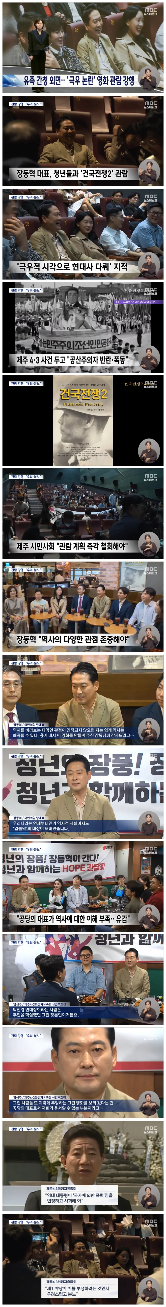 장 대표는 "역사의 다양한 관점이 존중돼야 한다"며 "영화를 만들어준 감독에게 감사하다"고 말했습니다.