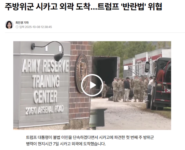 앞서 시카고 당국과 일리노이주는 트럼프 대통령의 주 방위군 투입이 불법적이고 위험하다면서 소송을 제기했습니다.