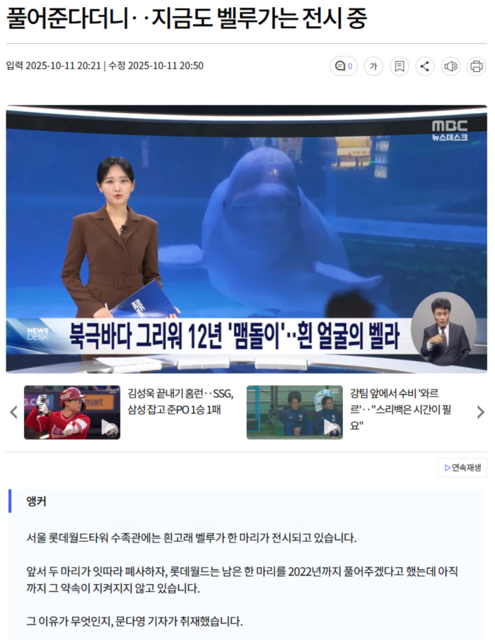 롯데월드는 방류기술위원회를 구성하고 마지막 남은 벨라를 2022년까지 방류하겠다고 발표했습니다.