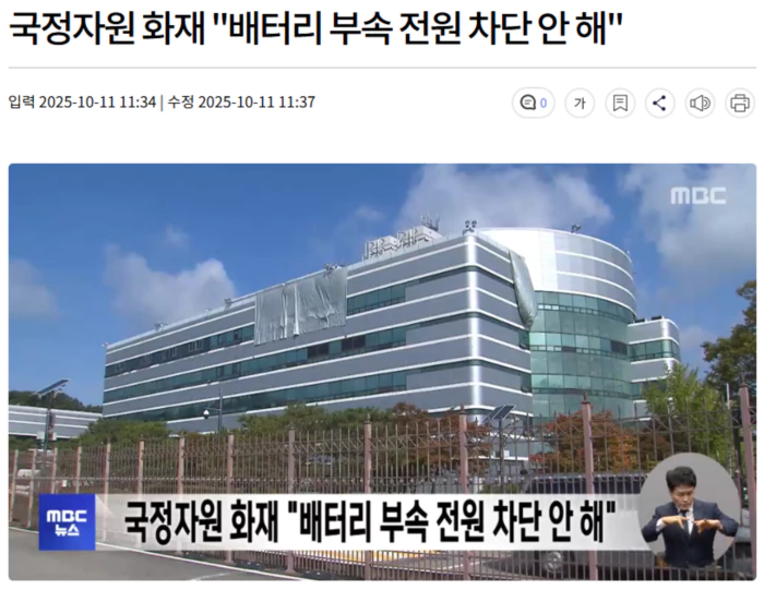 대전 국가정보자원관리원 화재 원인을 수사 중인 경찰이 공사 당시 배터리 부속 전원을 차단하지 않았다는 업체 관계자 진술을 확보했습니다.